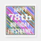 Den här pappra napkin-designen med roligtens födelsedag innehåller ett meddelande som "LYCKLIG 78:e BIRTHDAY, FIRSTNAME!", där namn kan anpassas. Bakgrunden har ett dynamiskt, flerfärgat rand mönster. Meddelandetexten är vit färgad och ser illa ut. Napkins som dessa kan kanske användas i en födelsedagsfest till någon som firar sin sjuttioåttonde födelsedag. [~Z0000270]
