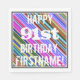 Den här pappra napkin-designen med roligtens födelsedag innehåller ett meddelande som "LYCKLIG 91:a BIRTHDAY, FIRSTNAME!", där namn kan anpassas. Bakgrunden har ett dynamiskt, flerfärgat rand mönster. Meddelandetexten är vit färgad och ser illa ut. Napkins som dessa skulle kanske kunna användas i en födelsedagsfest till någon som firar sin nittioårsdag. [~Z0000270]