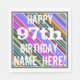 Den här roligtens pappra napkin-designen innehåller ett meddelande som "LYCKLIG 97:e BIRTHDAY, NAMN-HERE!", där namn kan anpassas. Bakgrunden har ett dynamiskt, flerfärgat rand mönster. Meddelandetexten är vit färgad och ser illa ut. Napkins som dessa skulle kanske kunna användas i en födelsedagsfest till någon som firar sin nittiosjunde födelsedag. [~Z0000270]