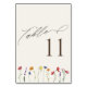 Det här enkla, moderna och vibrerande bordsnumret för vilda blommor är perfekt till din bröllopsmiddag eller lunch, oavsett årstid. De vildblommor som finns på eleganten är både charmerande och förenklade med den extra sofistikerade beröringen av handskriven kursiv och serif-typografi. Njut av bröllop i vår, sommar, fall eller vinter med vår vackra, färgstarka och minimala design. Det här är perfekten för att bord ska kunna ställa in temat hela vägen genom mottagning, ceremoni och party. VIKTIGT: Bordsnumren måste beställas individuellt. Bordsnumren fylls inte i automatiskt.