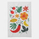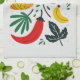 Vibrant Folk Art Tropical Fruit Chili Pepper Kökshandduk