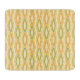 A vibrant geometric pattern with hexagonal shapes outlined in orange and teal on a soft yellow background, creating a retro, rhythmic visual effect.