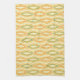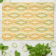 A vibrant geometric pattern with hexagonal shapes outlined in orange and teal on a soft yellow background, creating a retro, rhythmic visual effect.