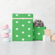 A pattern of evenly spaced small white hearts on a vibrant green background, creating a cheerful and lively atmosphere.