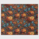 Denna vibrerande Halloween-temade pappra förpackning har ett sömlöst, mycket detaljerat mönster i orange som är täckt av vinklade pumpor som är sammanflätade med vinklade blått och orange botaniska blommor. Kontrasten för rik av varma pumptoner och coola teal löv skapar en slående, perfekt för presentemballering under höstsäsongen, Halloween fest eller festfall i firande.