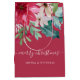 Den här julklappen i snyggt och elegant har en blommigt i trendigets vattenfärg på en fin, rosa bakgrund. En blandning av poinsettiska blommor, hullbär och löv är färgad i höggradiga skuggor av rött, rosa, grönt, och blått. Trendigets handskript i vitt säger "god jul".