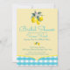 Vibrant Lemon Inbjudningskort för möhippa. Fullt livfull inbjudan till avslappnad- och BBQ-möhippor. Light teal gingham mönster med vintage målade citronaccenter. Bröllop är utformat för samordning med vår insamling av Luscious Lemon bröllop. Om du vill ha ytterligare bröllop kan du checka ut MetroEvents på Zazzle.