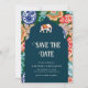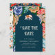 Vibrant indisk folkart Elephant Mörk blått Bröllop Spara Datumet