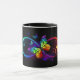 Vibrant infinity with rainbow butterfly on black mugg