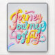 Utformningen innehåller frasen "Journey Joyully." i en explosion av många hues i färg, som fångar kärnan av ett andat och optimistiskt äventyr. De lekfulla, vibranta typografitittarna i inbjudan för att entusiastiskt och positivt anamma varje steg på resan skapar varje ögonblick en firande av livets livliga upplevelser. "Ursprunglig bild genererades av Meta AI. AI skapade teckningar. Licensierad enligt CC BY-SA 4.0.