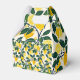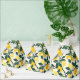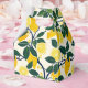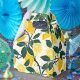 Mönster har en livlig och levande design med lush citon träd. Grenar är kantat av mogna citroner av skarp gult, av vilka några är skivade för att visa deras saftiga insida. Citronerna omges av löv i djup grönt, som på ett utmärkt sätt kontrasterar mot den varma, gräddaktiga färgaden. Hela stil är djärvt och stiliserat, med rent linjer och symmetri, och skapar en ny och glad estetik som framkallar en Medelhavsvib.