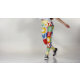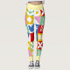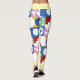 These leggings burst with playful, modern energy thanks to their bold patchwork design. Each square and rectangle features its own vibrant motif—tulip-like florals, diamonds, stars, circles, and stylized leaves—creating a lively mosaic of color and pattern. The palette mixes saturated reds, yellows, greens, blues, pinks, and crisp white, giving the piece a cheerful, retro‑meets‑modern vibe.