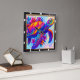 Den här häpnadsväckande klockan på kvadratiska väggar visar en vibrerande, regnbågssköldpadda som simmar omsorgsfullt i färgstarka tropiska färgader. Dess konstnärliga utformning, med djärva nyanser av rosa, blått, gult och orange, skapar en livlig och dekorativ tidspunkt som ger havets skönhet och naturinspirerad charm till vilket rum som helst.
