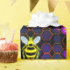 Vibrant Neon Honeybee med Abstrakt Hexagonal Presentpapper