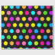 Det här mönster som fångar öga har en färgstark polka dots mot en svart bakgrund. Perfekt för att lägga till en djärv och modern beröring till dina projekt.
