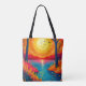 Carry the breathtaking beauty of the outdoors wherever you go with this stunning tote bag. The design features a highly stylized, vibrant landscape showcasing a glowing orange sunset, a peaceful reflective lake, and striking tree silhouettes. Whether you're heading to the farmer's market, the beach, or just running daily errands, this durable and aesthetic bag is the perfect accessory for nature lovers and wanderlust seekers.