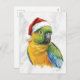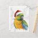Vibrant Parrot Portrait in Santa Hat Helg Vykort