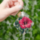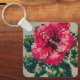 Vibrant pink hibiscus pixel art nyckelring