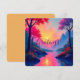 Send a deeply thoughtful and beautifully artistic message with this stunning serene landscape greeting card. The front of this card showcases a dreamy, atmospheric painting of a glowing sunset reflecting off a calm mountain river, framed by vibrant pink and magenta trees. This peaceful, relaxing scenery is absolutely perfect for birthdays, words of encouragement, or sympathy messages. The composition includes perfectly placed template areas, allowing you to customize the front greeting and easily add a heartfelt, personalized message inside.