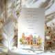 Inbjudan dina gäster till ett glad och färglöst firande med den här fängslande inbjudan till ett bröllop med vattendjup, som har den pulserande kolonialarkitekturen i Puebla, Mexiko. I teckningen visas på ett vackert sätt ett vattendrag av färgad byggnad, inklusive fasader i varma gulter, rikens nyp, orangar och särskiljande blues, vissa adorerade med traditionellt Talavera-stil-plattor mönster (som diamant/harlequin-design). Karakteristiskt torn med terracotta-kuster stiga upp ovanför scenen, allt återges i ett mjukt, vibrerande vattenfärgen stil. Scenen är kantad av ömtåliga grönt-lövstift och har små gröntar och ett stiliserat träd, vilket ger en liten charm. Denna inbjudan är perfekt för ett destinationsbröllop i Mexiko, eller för par som älskar livlig kultur, färglös arkitektur och konstnärligt sfärande. På den eleganta sidan i presenter får du information om bröllop, medan den omvända sidan innehåller informationen "Finer Details" (Finer-information) för gästinformation. Paletten i färg är en fin blandning av soliga , varma orangar, vibrerande nyp, terracotta , olika blåfärgade nyanser och färska gröntar mot ett mjukt himmel.