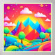 Njut av en levande och lekfull tecknad med den här fängslande grafiken med färgstarka berg, träd och ett levande himmel (den här designen gjord med AI). Ställe beställer i dag och Kämpa på köpet!
