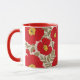 Vibrant Red-Blommönster med Oliv grönt Löv Mugg