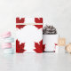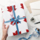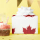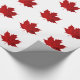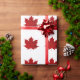 Den pulserande röda Maple Löv kommer att se underbar ut runt dina gåvor, perfekt för kanadensare, det röda löven upprepas på omslaget pappert, bakgrunden är vit.