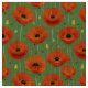 Vibrant Red Poppies Mönster på Gröntens bakgrund Tyg
