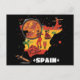 Vibrant Spain Map Flamenco, Paella & Bull Vykort