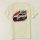 Slimmad sportbil med en konstnärlig färgad bakgrund i stänk som symboliserar snabbhet, upphetsning och kreativitet.