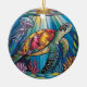 Vibrant Stained Glass Sea Turtle Ocean Design Julgransprydnad Keramik
