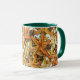 This is a Habatour Creations coffee mug, decorated with an authentic pattern design with vibrant starfishes