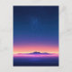 This breathtaking postcard captures a moment of pure cosmic wonder. The upper half of the scene features a deep indigo sky densely packed with shimmering stars and a luminous galaxy cluster. The horizon radiates a warm, golden and pink glow that reflects perfectly onto a calm, mirrored surface below, creating a seamless blend of celestial and earthly beauty. Distant purple mountain peaks stand in sharp silhouette against the vibrant transition of light. With its rich color palette and ethereal atmosphere, this piece evokes a sense of deep peace. This postcard is a perfect choice for sending a hopeful message, a peaceful greeting, or as a beautiful decorative keepsake for any stargazer.