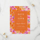 Lägg märke till din stora dag med denna sjudande rosa och orange bröllop spara datum i sommarträdgården, som finns både som ett tryckt kort inbjudan och som en omedelbar digital nedladdning. Det är perfekt för par att söka efter roligt, trendig och intensiv vibe med feta blommigtar i rosa och orange. Med sitt färgstarka botaniska tema i vår är det här unika spardatumet ett glatt sätt att ange tonen för din stora dag. Perfekt för rosa och orange spara datumet firande!