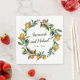 Med inspiration från elegant Mediterranean och den italienska citrusfruktodlingen har denna elegant bröllop-servetter ditt namn och bröllop-datum, som har sitt ursprung i ett garland med pulserande grenar av mandarincitrusfrukter och klementiner, elfenben blommar och löv. Tydliga blad av grönt, skarp tangerinäring och mjuka vita blommor för detta färska och harmoniska färg-system. Använda dessa servetter vid mottagningar, repetitionsmiddagar, förlovningsfester med mera.