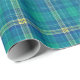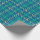 A lively and colorful tartan plaid pattern featuring dominant shades of teal, aqua, and deep mariner blue. The intersecting lines are accented with thin stripes of bright yellow or chartreuse, adding a pop of contrast. This seamless, energetic textile design evokes a modern twist on a classic Scottish weave, perfect for coastal themes, youthful apparel, or any project needing a bold and refreshing color scheme.