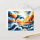 Vibrant Tropical Dolphin Sunset Ocean Art Helg Vykort