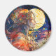 En pulserande runt magnet med en vattenfärgsmålning av en flicka och måne.