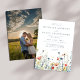 Den här designen har en gräns av levande vilda blommor i röda nyanser, gult, grönt, teal och blått. Perfekt för avslappnad sommar bröllop.
