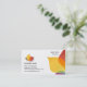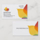 Visitkorten med en abstrakt symbol, med löv formar inspirerat vid naturen i olika färggraderingar. Dubbelsidigt kort.