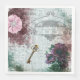 Rosa och lila vallmoblommor, vintage skelett nyckel och tidningsutskrift med burgig färg och vintage dekorativ ram. Underbar för nedbrytning av små projekt.