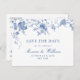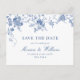 Elegant Vintage Blått Fransk Garden Blommigt Bröllop spara datum vykort.