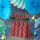 Fin design för Helgdagar med vintage-/viktoriskt fläns har lodrät av ljus- och mörk-burgundi åtskilt med "spindle" guld linjer.
