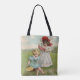 De här söta småflickorna tar en paus för att blöta ner hetterna. Detta är en vacker illustration från slutet av 1800-talet, när barn spelade i vackra kläder i trädgården.