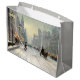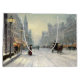 Vintage Viktorian City Jul-scen i snö, fylld med människor och en häst dragen tränare.