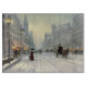 Vintage Viktorian City Jul-scen i snö, fylld med människor och en häst dragen tränare.