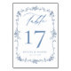 Victorian Dusty Blue Elegant bröllop Bordsnummer