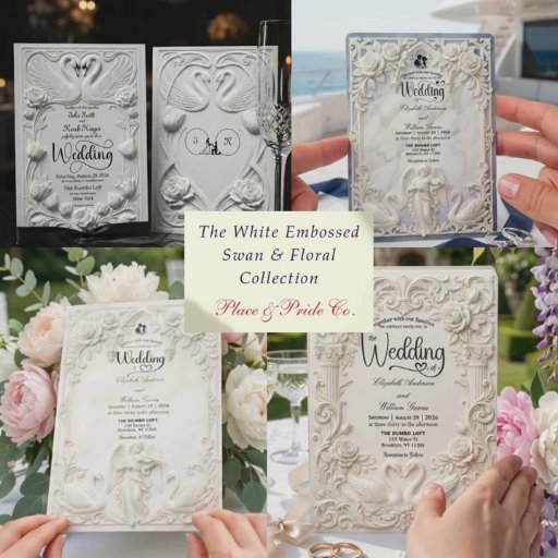 Victorian Faux Embossed Swan & Rose Wedding Inbjudningar