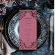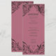Höj ditt gotiska bröllop med en Victorianinspirerad bröllop-meny som exuderar tidlös elegans och mysterium. Designat för att likna en antika bok-bindning, är den här fantastiska designen komplicerad av en svart och vin laktusfiligree, vilket framkallar en gammal tids charm. Låt din kärlek-historia utvecklas med ett program som är lika oförglömligt som din dag. Skapat av Farmhouse Press.