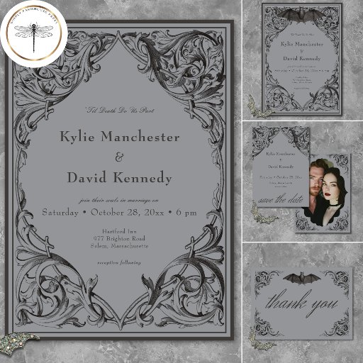 Victorian Bat Until Death Black & Gray WeddingDesignad av Kathe Santillo